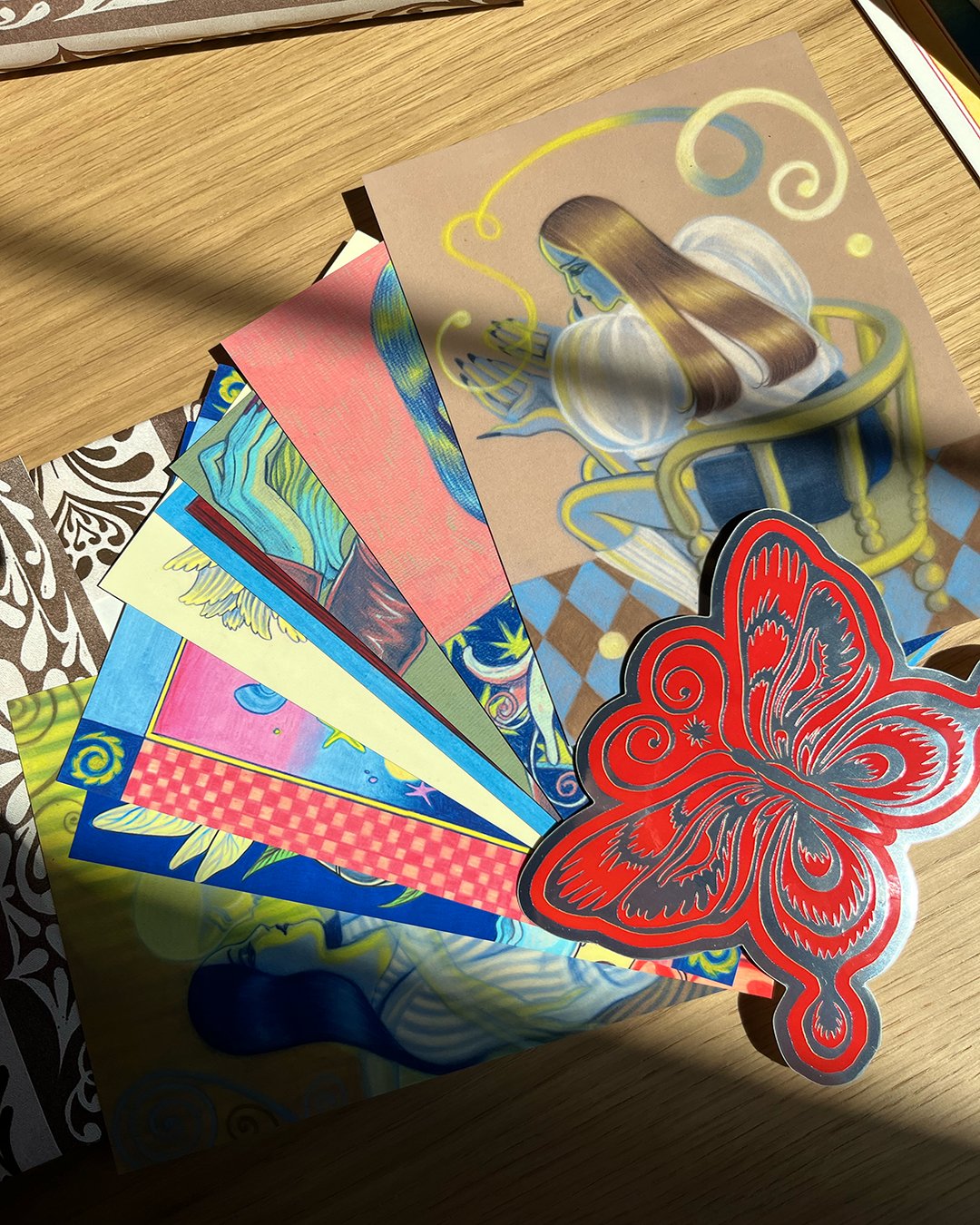 •Digital print reproduction of hand drawn colored pencil or pastel illustrations.
